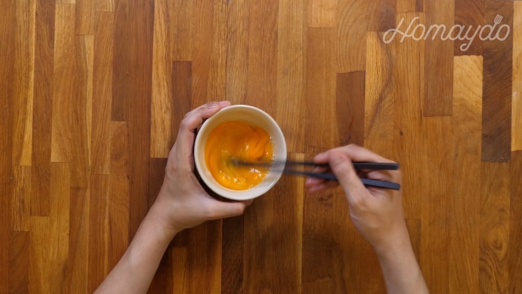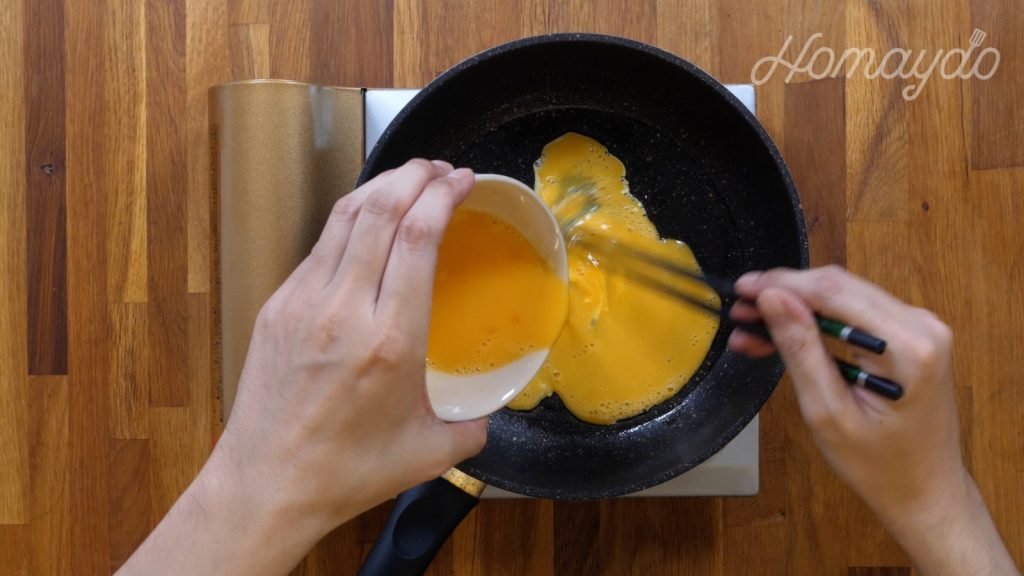 用中慢火起鑊,加入蛋漿煮1分鐘至熟透