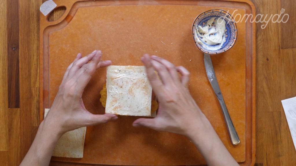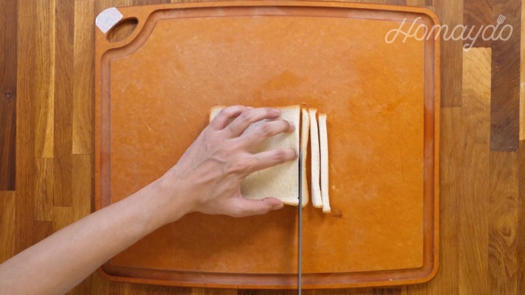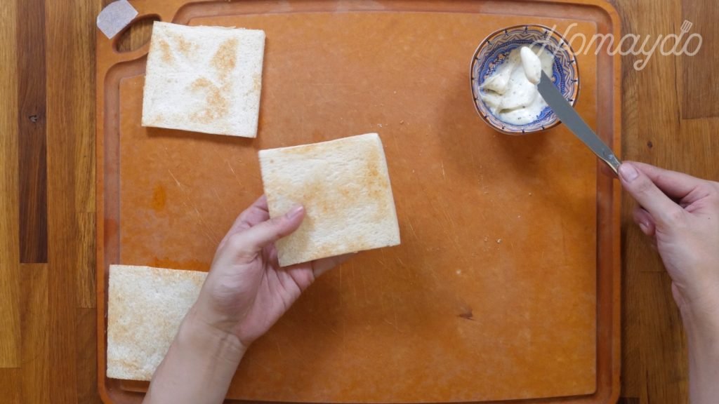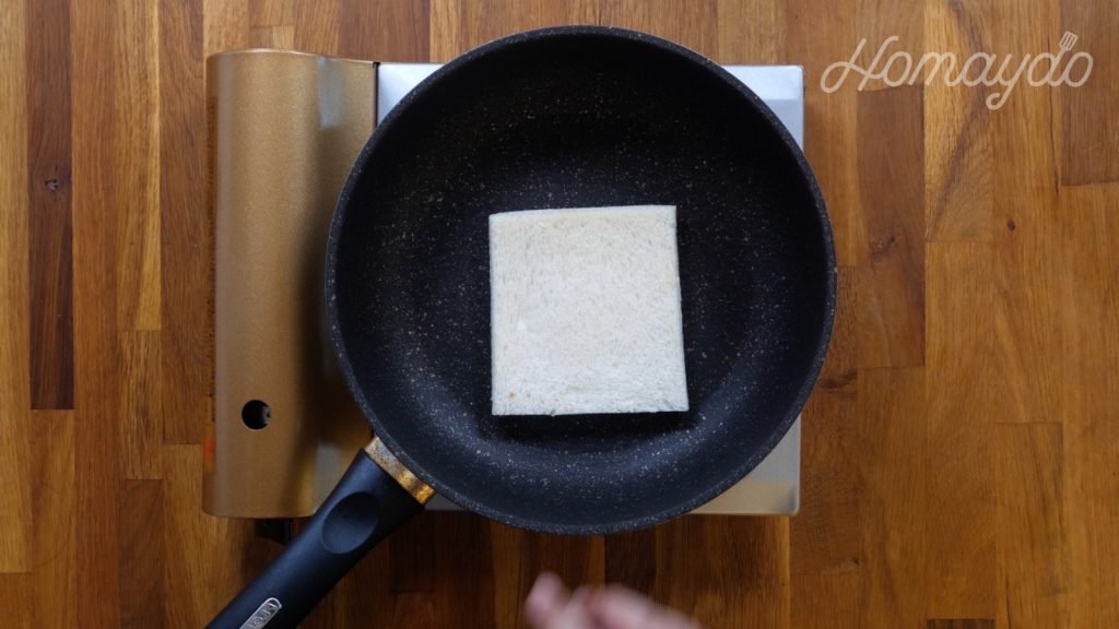 把白方包放入多士爐或鑊加熱慢火焗5分鐘
