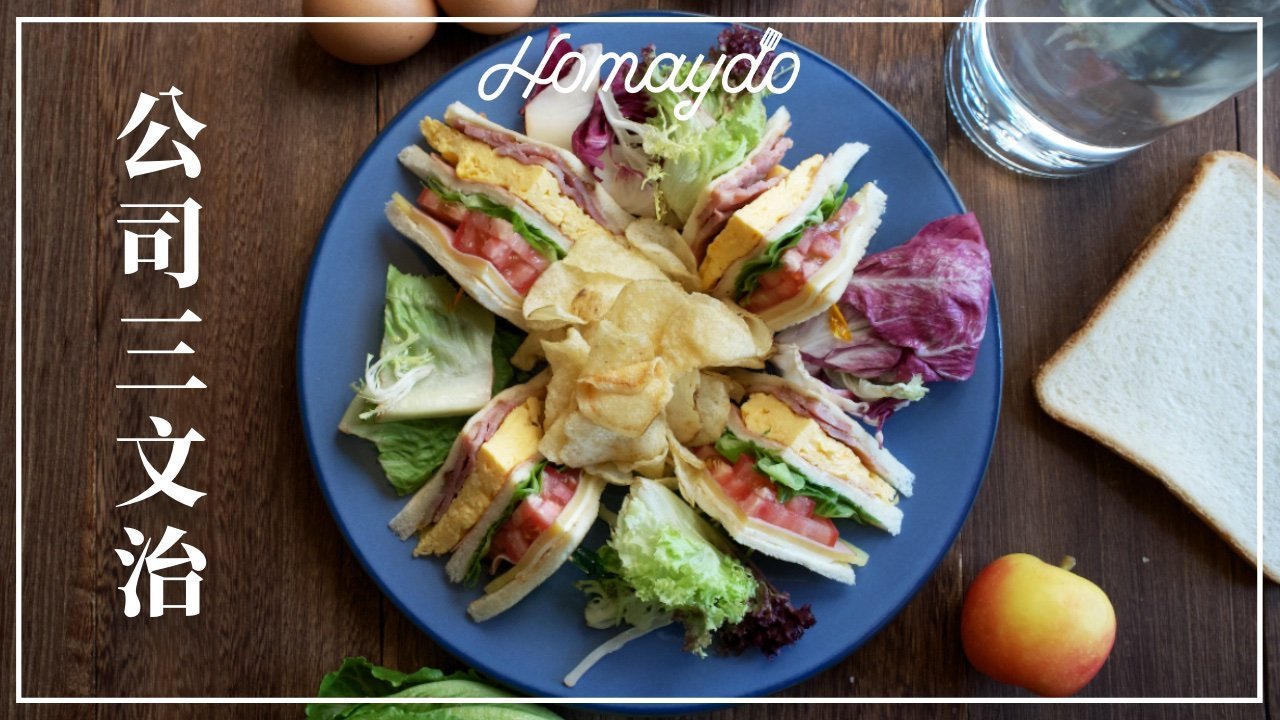 公司三文治,又稱「俱樂部三文治」,英文是Club Sandwich。為什麼時「CLUB」呢?其實實實在在是有原因的。CLUB 的意思其實是 Chiken & Lettuce Under Bacon 裡面每個字的字首 C、L、U、B。時至今天,各個地方都有各自的做法。香港的茶餐廳有的會使用到午餐肉。而我們這一次使用到的火雞肉片,在香港普遍的超市都不算便宜。所以,比較實際的做法是根據自己的喜好加入材料就可以了。當然,基本的番茄、生菜、雞蛋和芝士我還是一定會加入的。