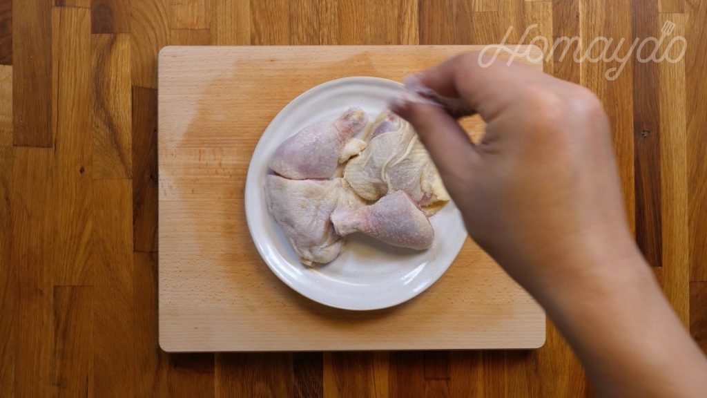 雞髀洗淨用廚房紙吸乾水份
