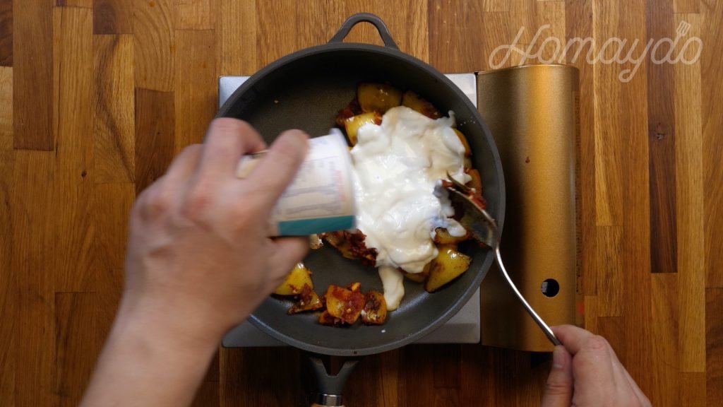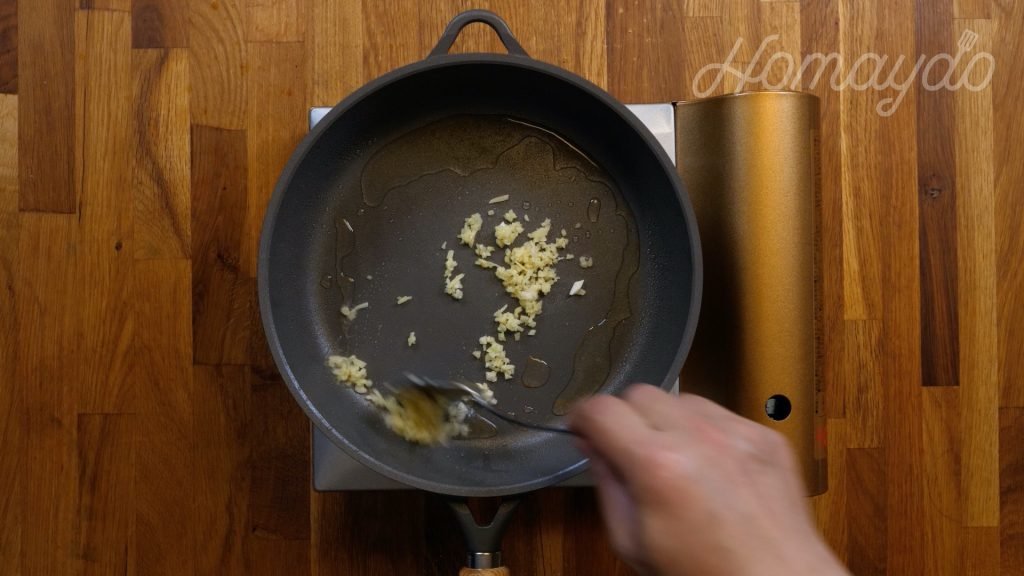 再加入蒜蓉、茄膏、乳酪拌勻