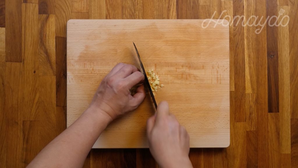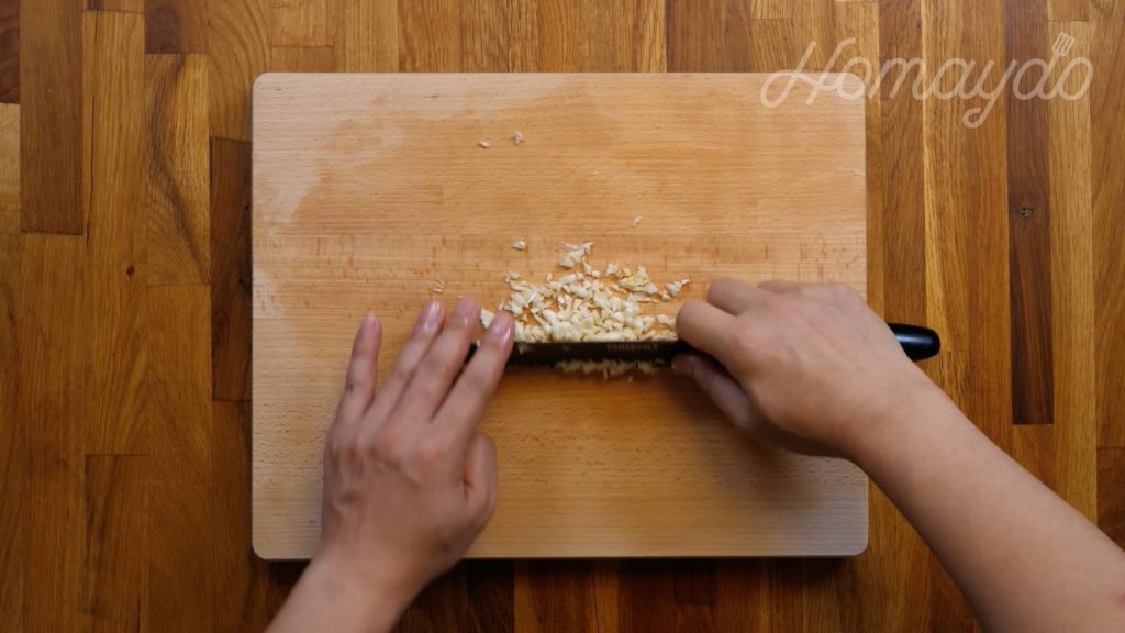 蒜頭去皮切小粒備用
