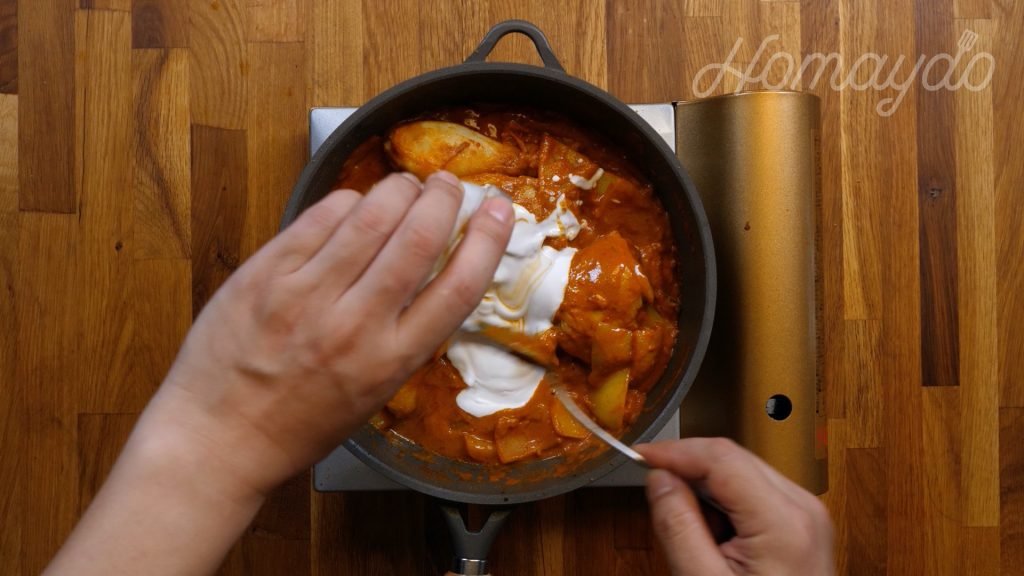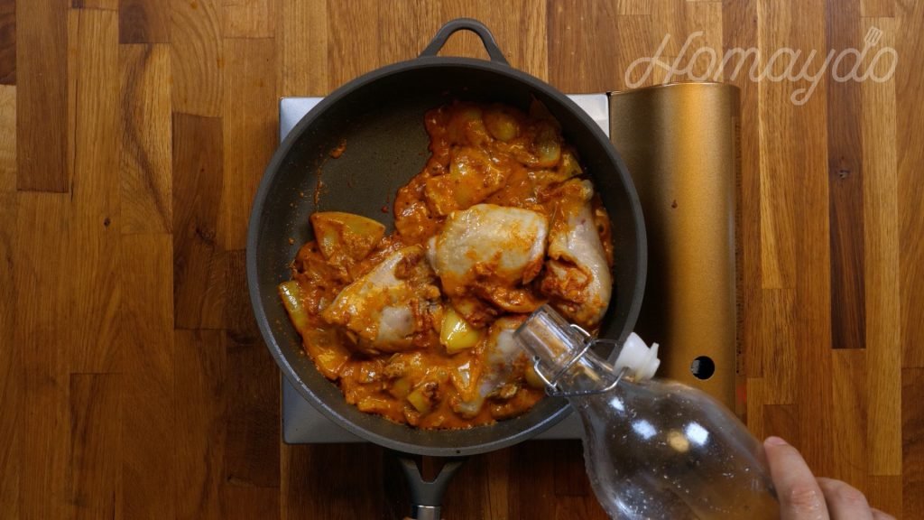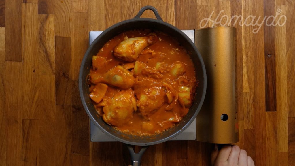 煮沸後轉小火煮 25分鐘,期間不時攪拌醬汁和反轉雞髀
