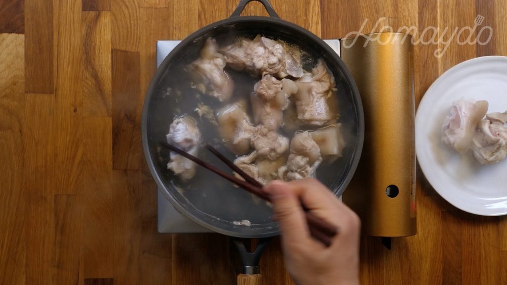 把豬手放進冷水,開大火煮沸汆水