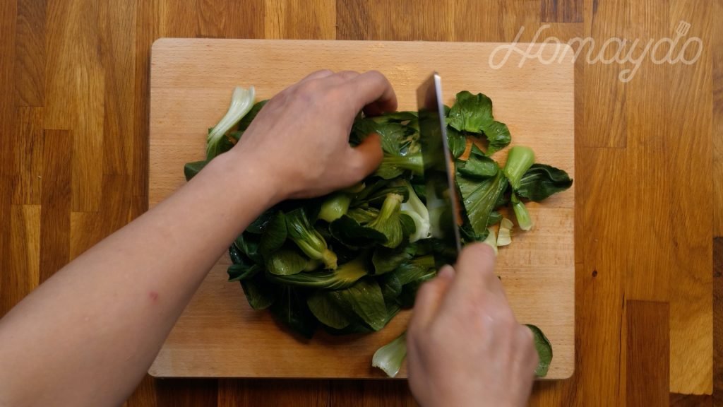 把小棠菜洗淨瀝乾水份,然後切成小段