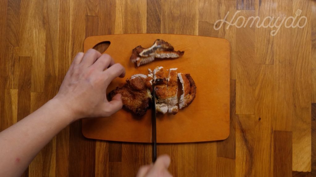 最後把豬扒切件即成