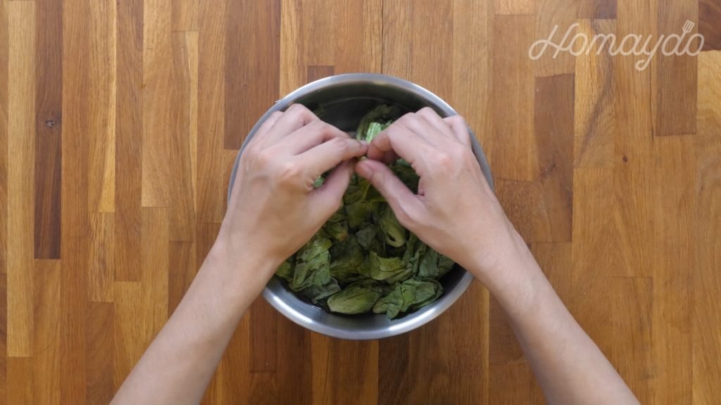 椰菜苗加入清水洗淨然後浸泡