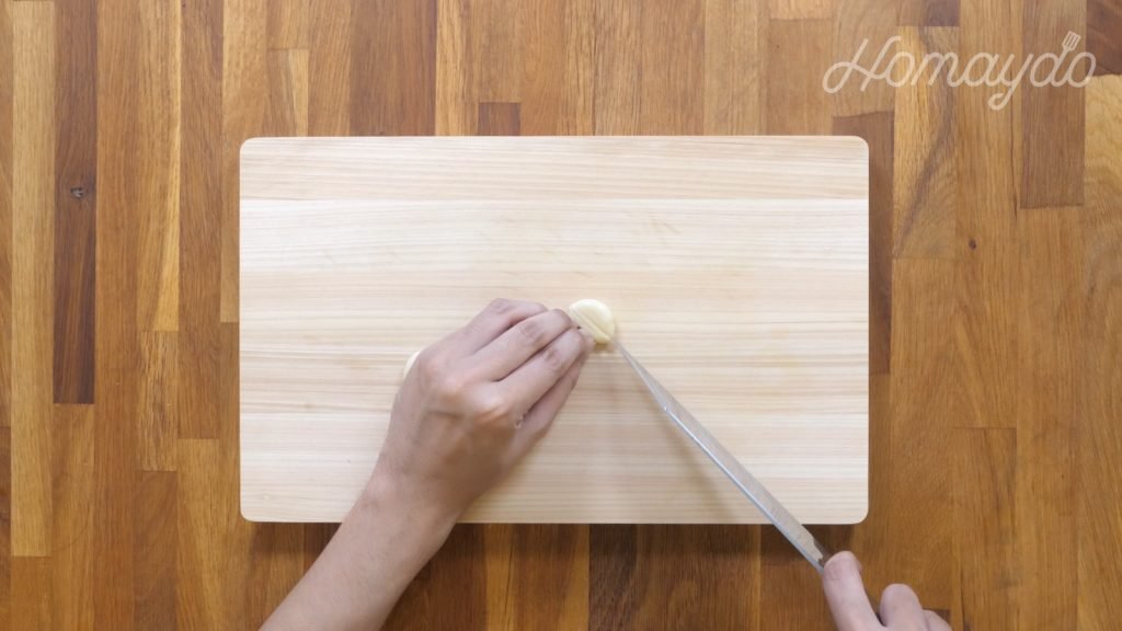 蒜頭去皮,把蒜頭切成蒜蓉