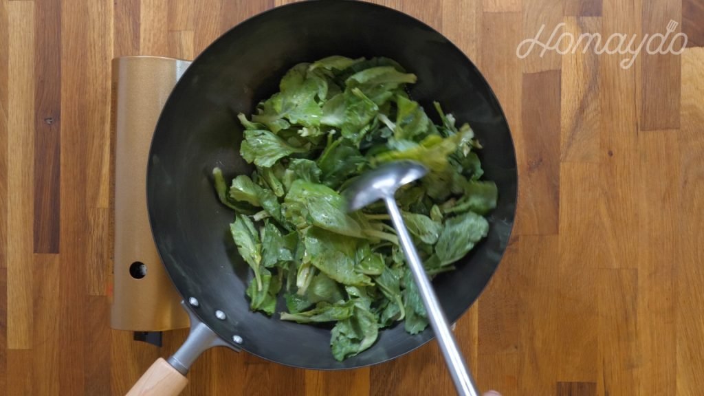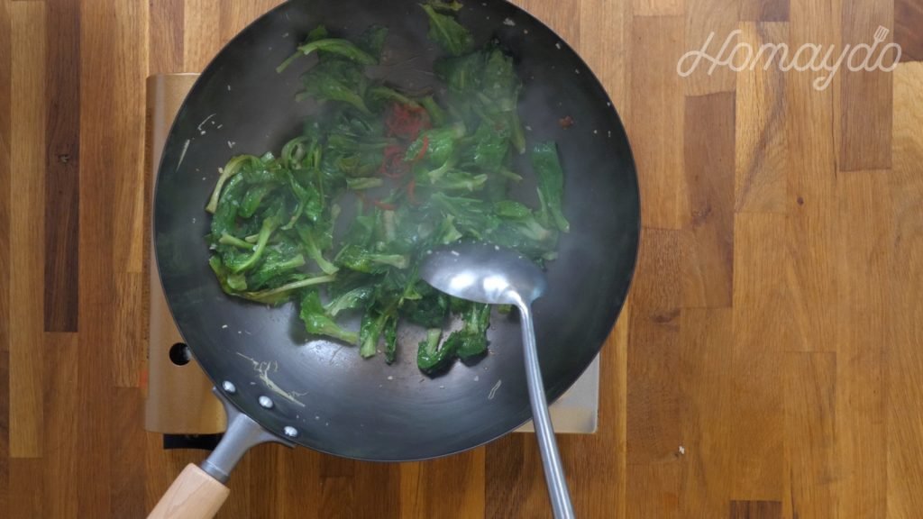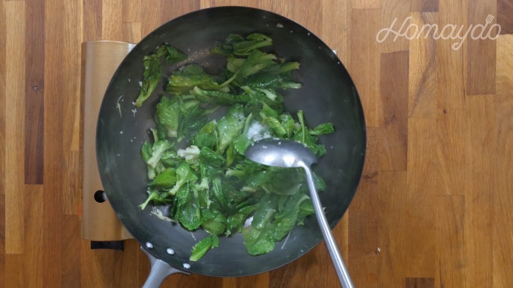 放入椰菜苗翻炒均勻至半熟