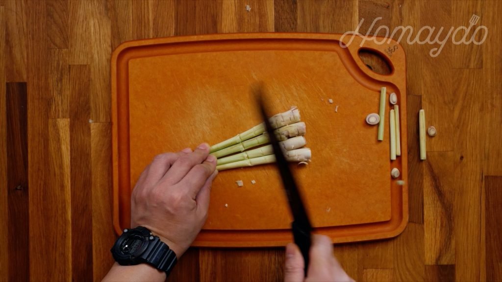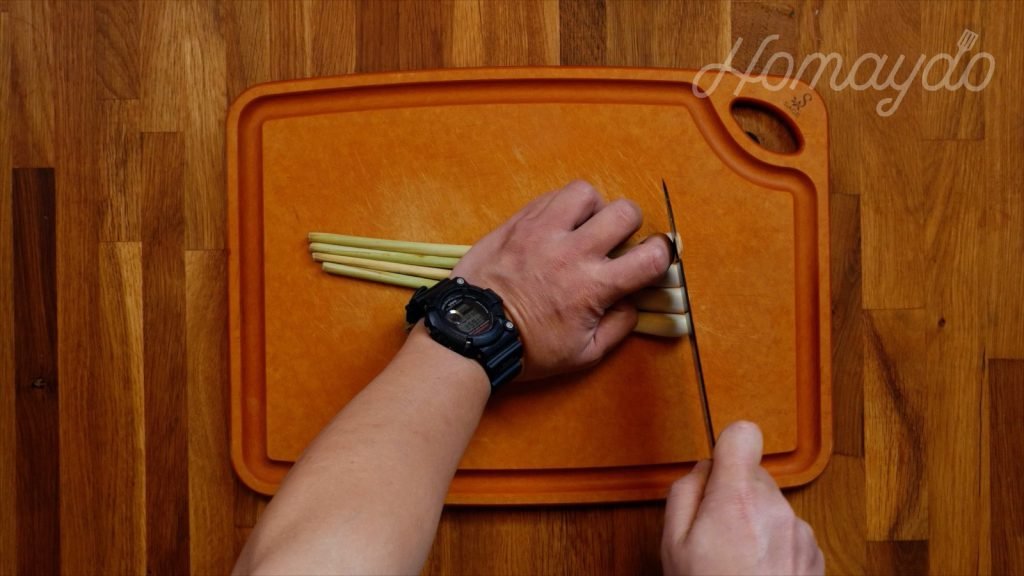 用刀將香茅拍散,再切成兩段備用