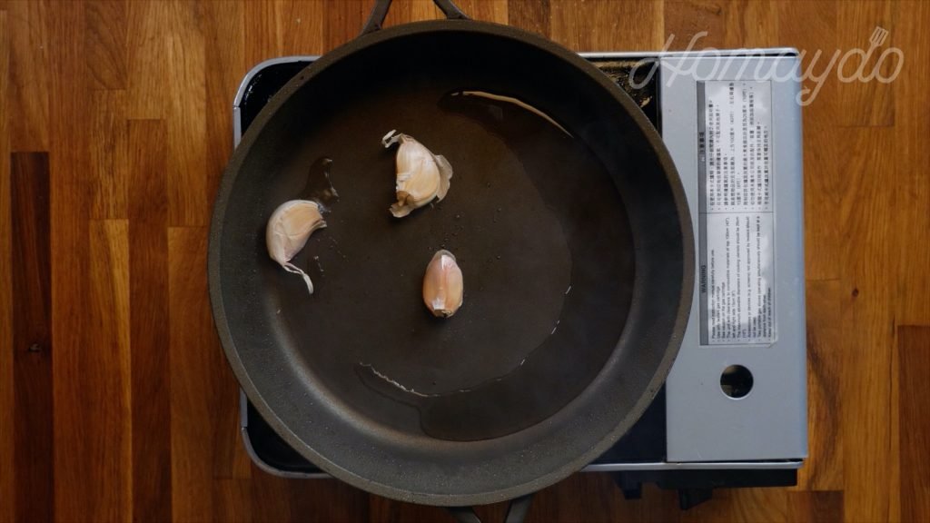 然後放入蒜頭略炒
