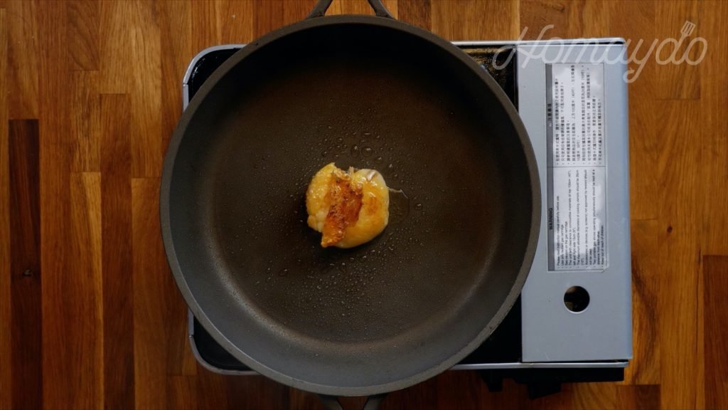 小火起鑊放入雞油,慢慢迫出雞油,再把脂肪拿起