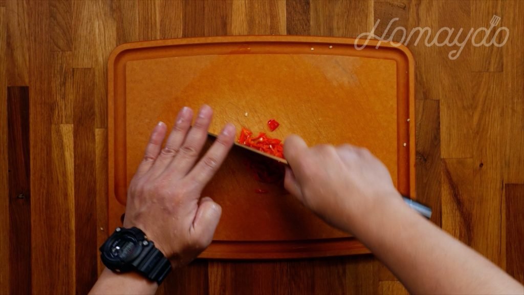 辣椒去籽,再切切碎