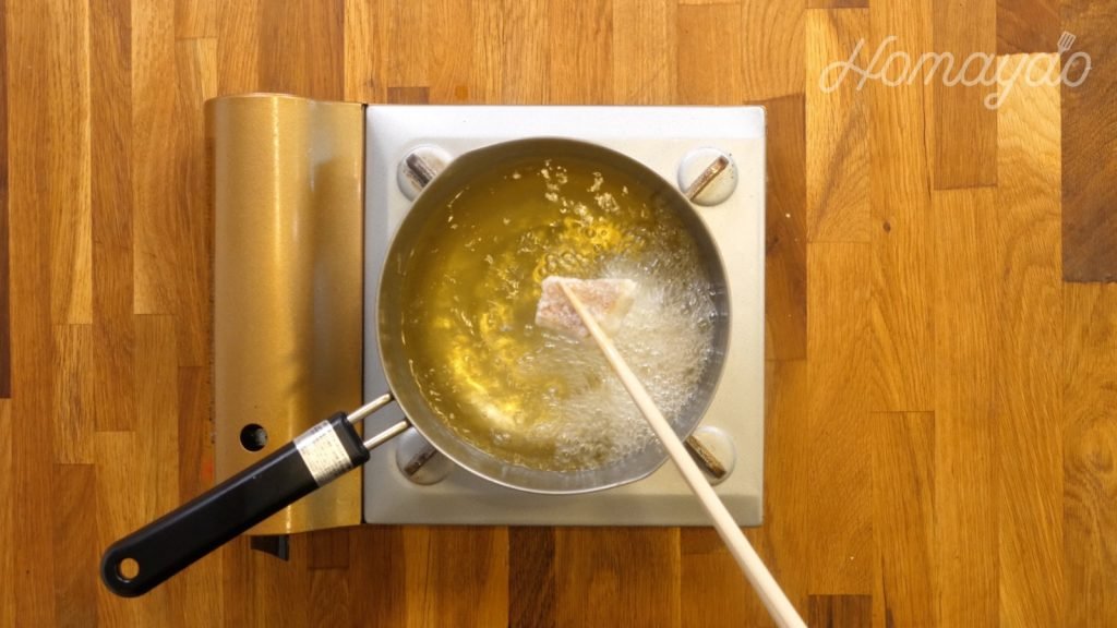 放入魚塊炸90秒