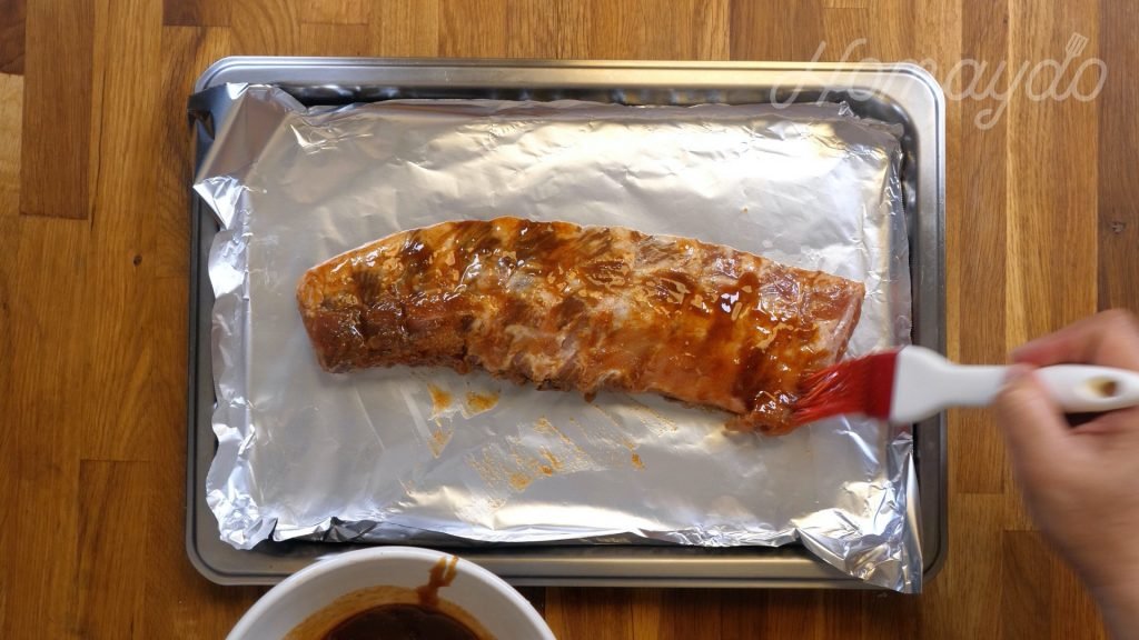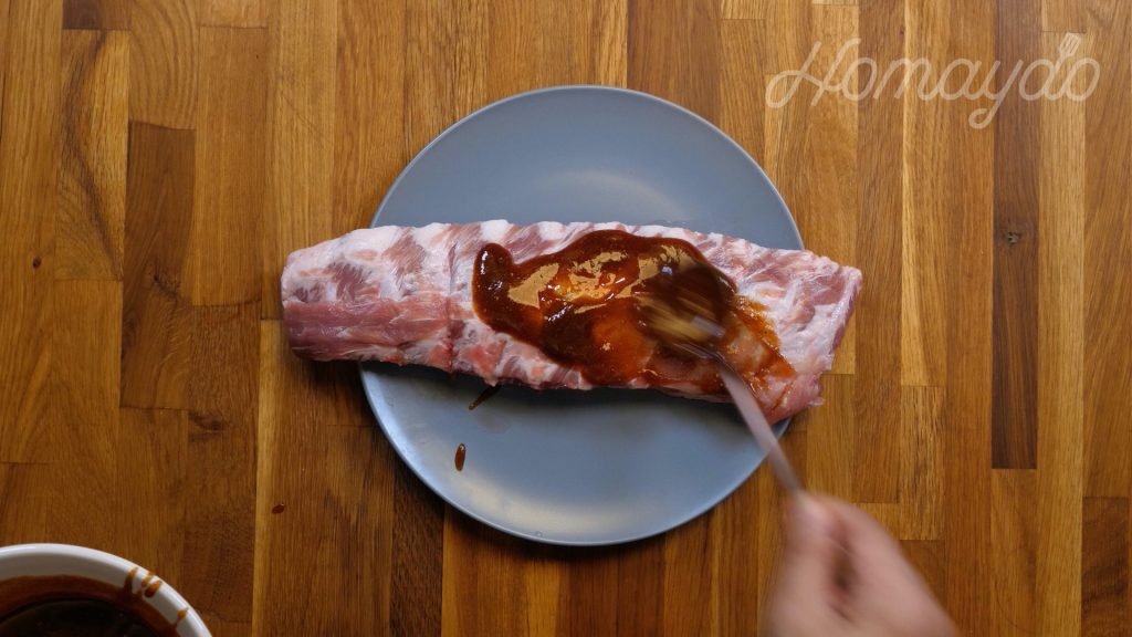 放上豬肋骨,再塗上一層醃料