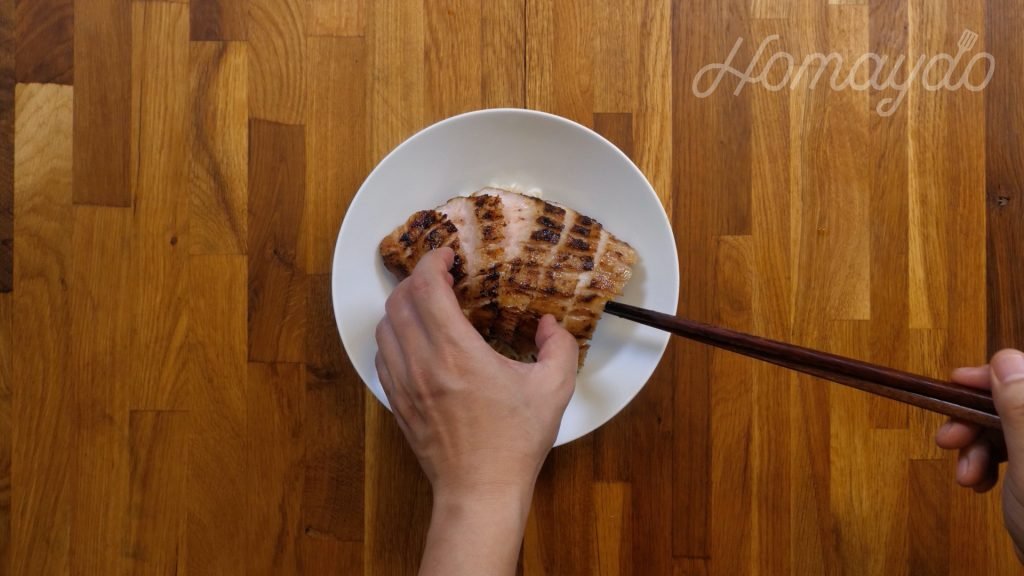 把豬頸肉切片,放在麵上
