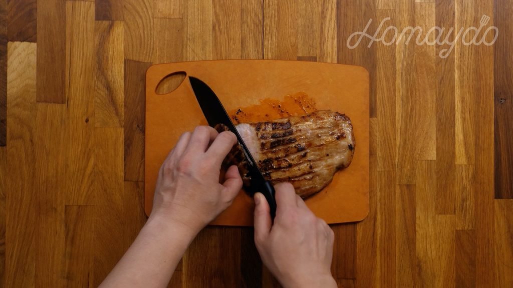先把豬頸肉洗淨瀝乾水,再輕輕切幾刀