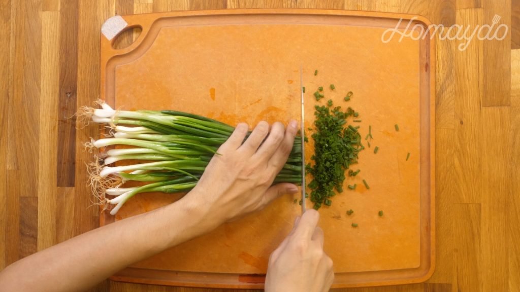把蔥洗淨切成蔥珠