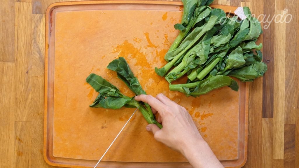 把芥蘭的葉和莖部分開