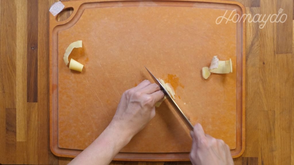 把薑去皮,切成幼絲備用