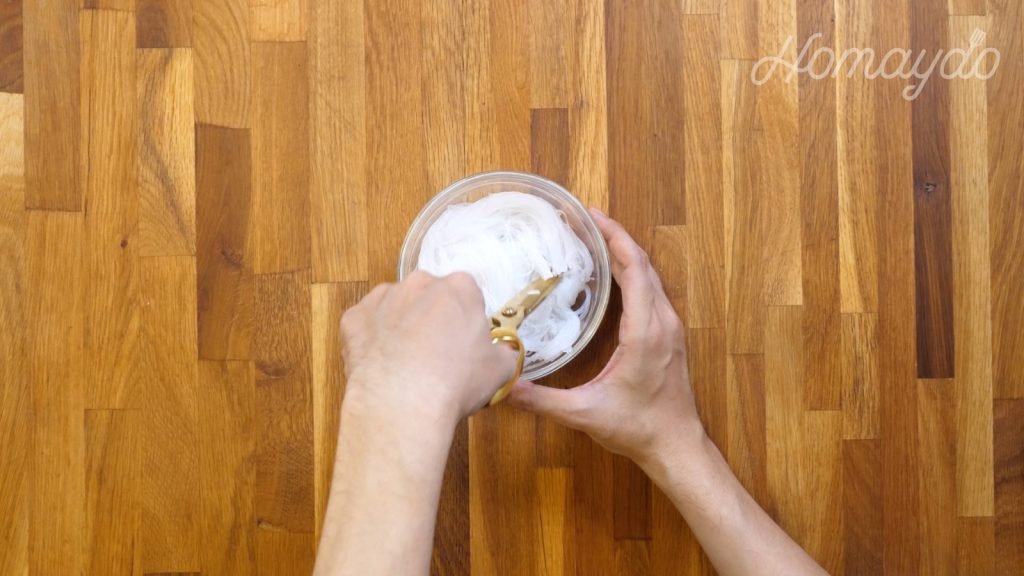 用剪刀把粉絲剪斷