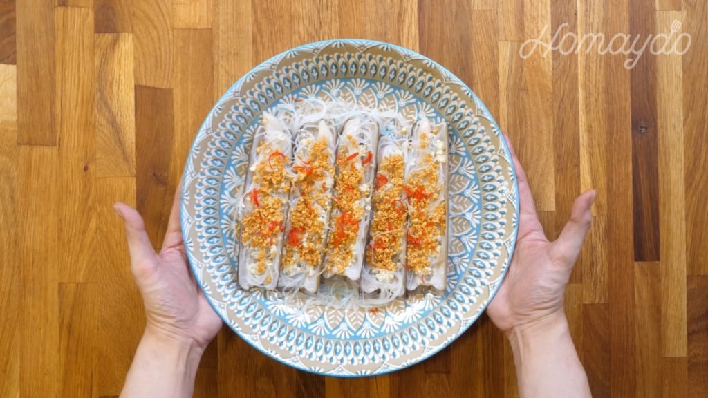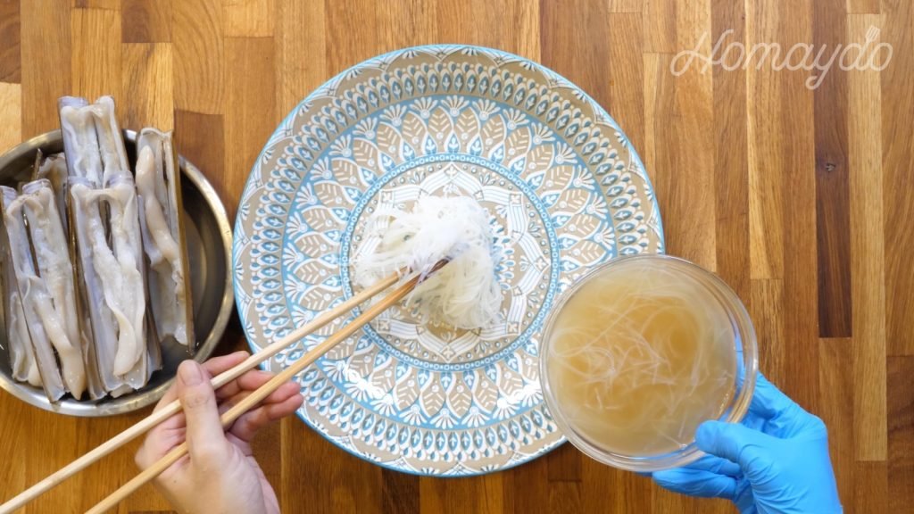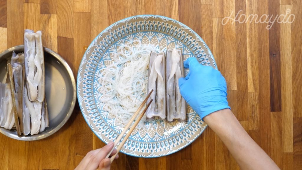 在蟶子上再鋪上粉絲