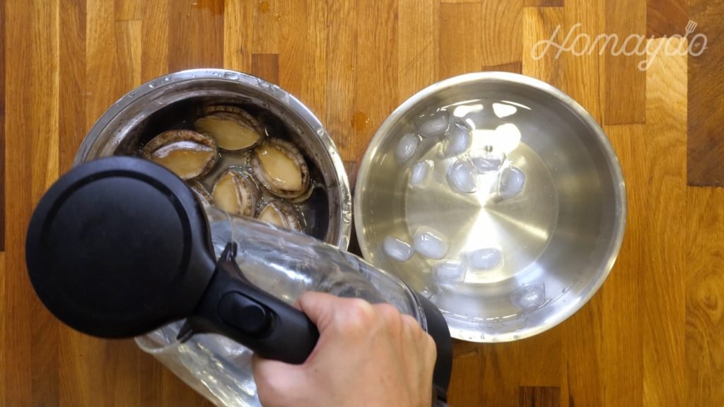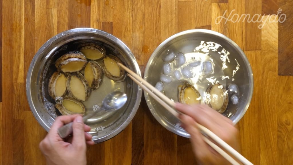 鮑魚加入熱水浸泡十五秒鐘