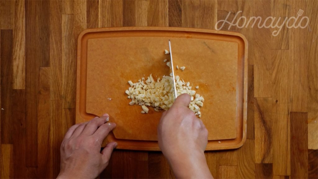 蒜頭去皮切粒備用