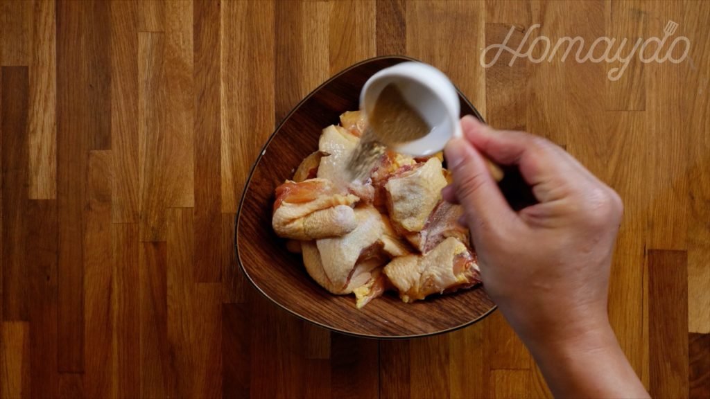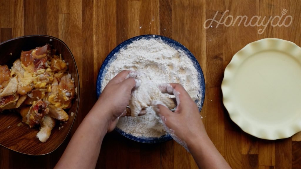 把雞件放入炸粉,均勻鋪上炸粉備用