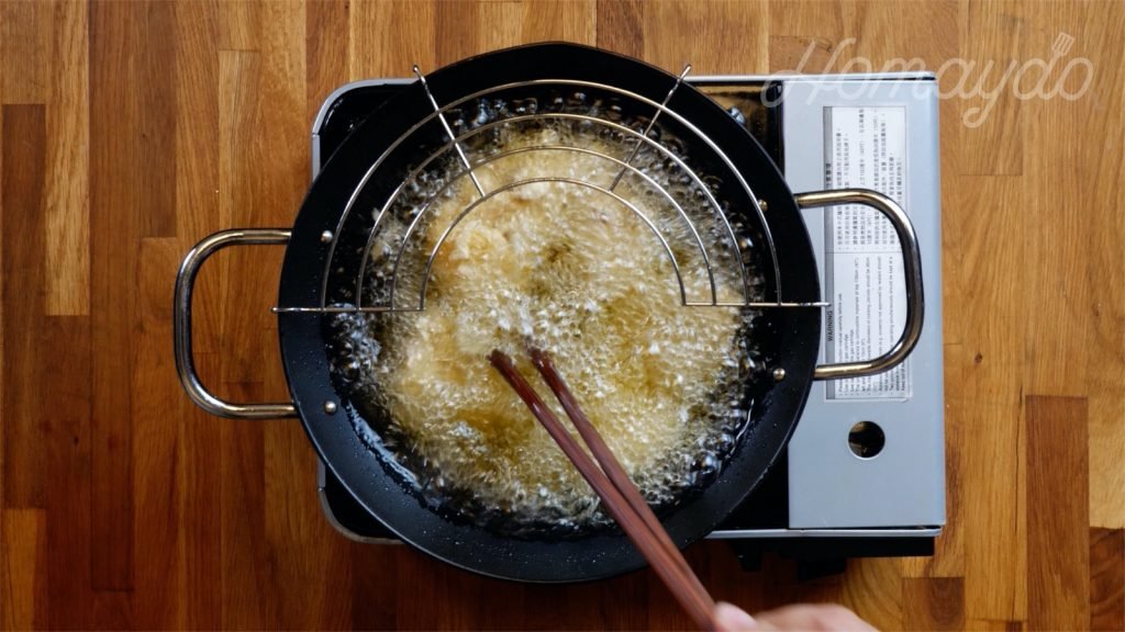 然後放入雞件,炸約 3-4分鐘拿起
