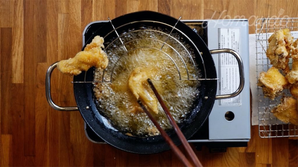 再把油加熱至180度,再放入雞件炸至金黄色及逼出多餘油份