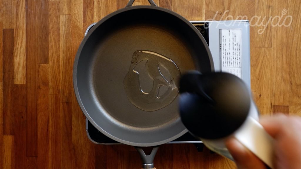 用一個鍋中火加熱,加入一茶匙油,加入蒜頭輕炒