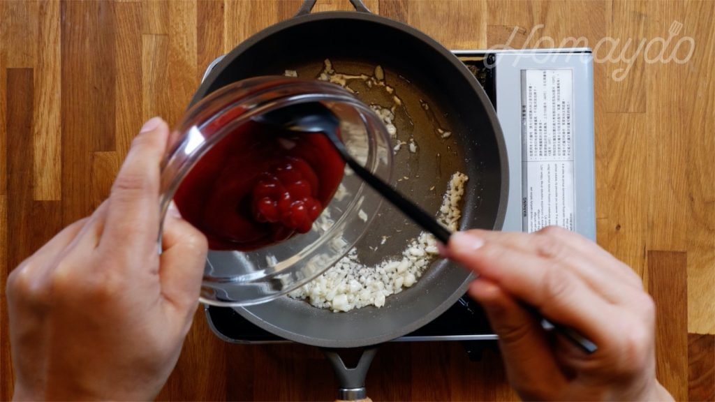 再加入茄汁,醋,辣醬拌勻