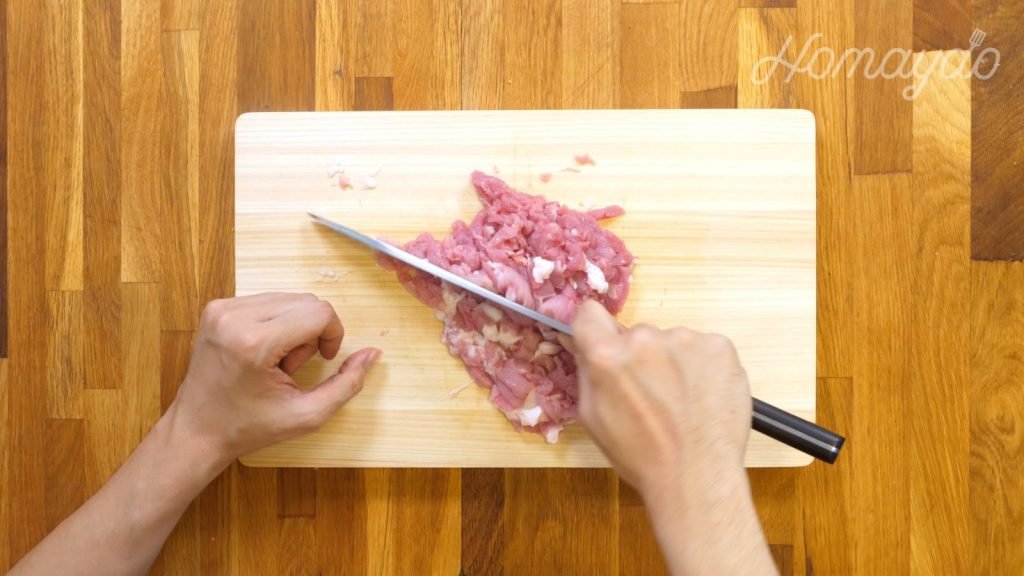 把豬肉切碎