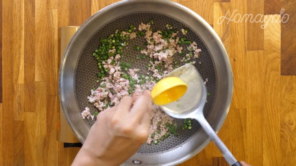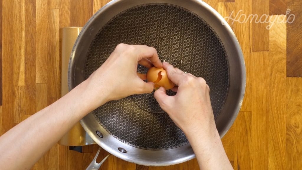 放入雞蛋煎至脆身