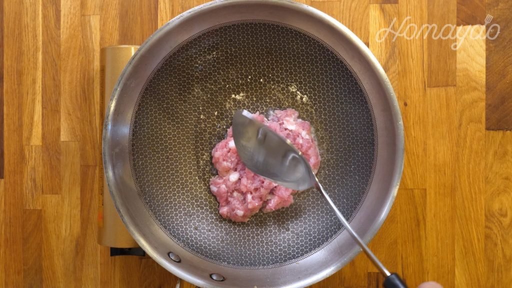 加入豬肉炒至半熟
