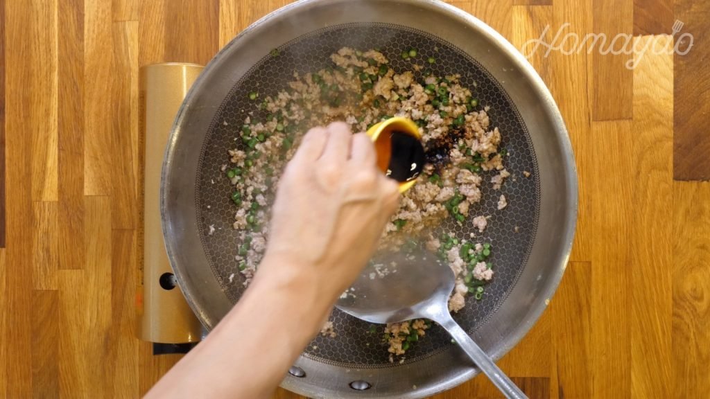 加入生抽、老抽及蠔油翻炒拌勻